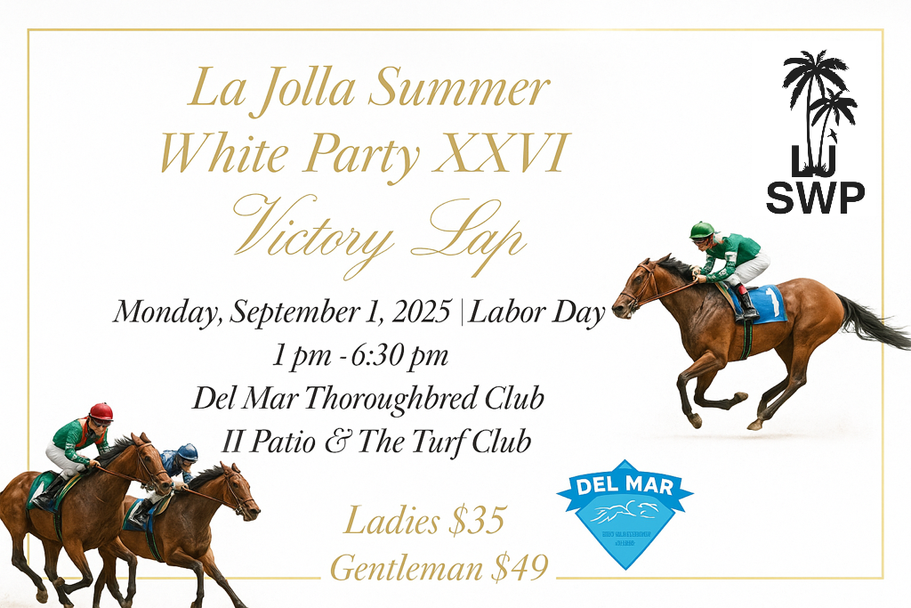 After 25 years of LJSWP’s we are taking a Victory Lap at the Del Mar Thoroughbred Club on Labor Day (your last day to wear white).